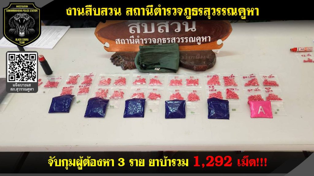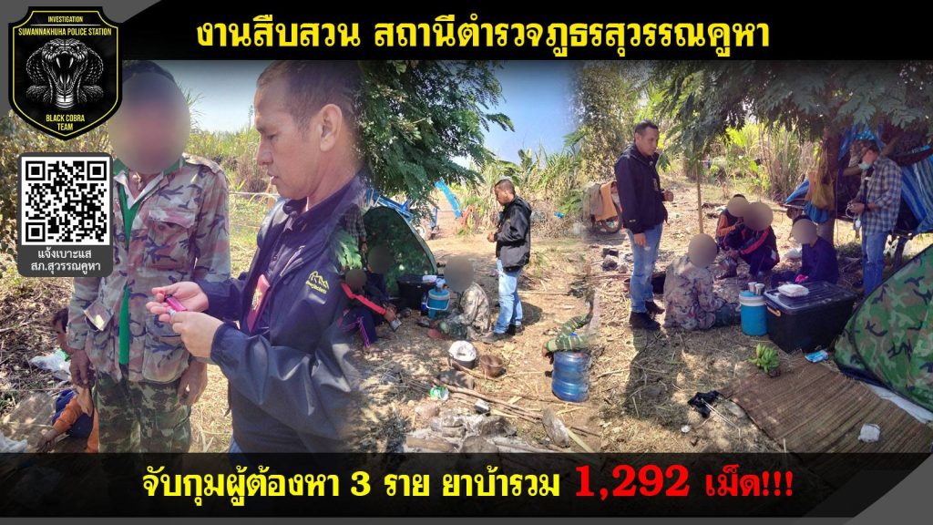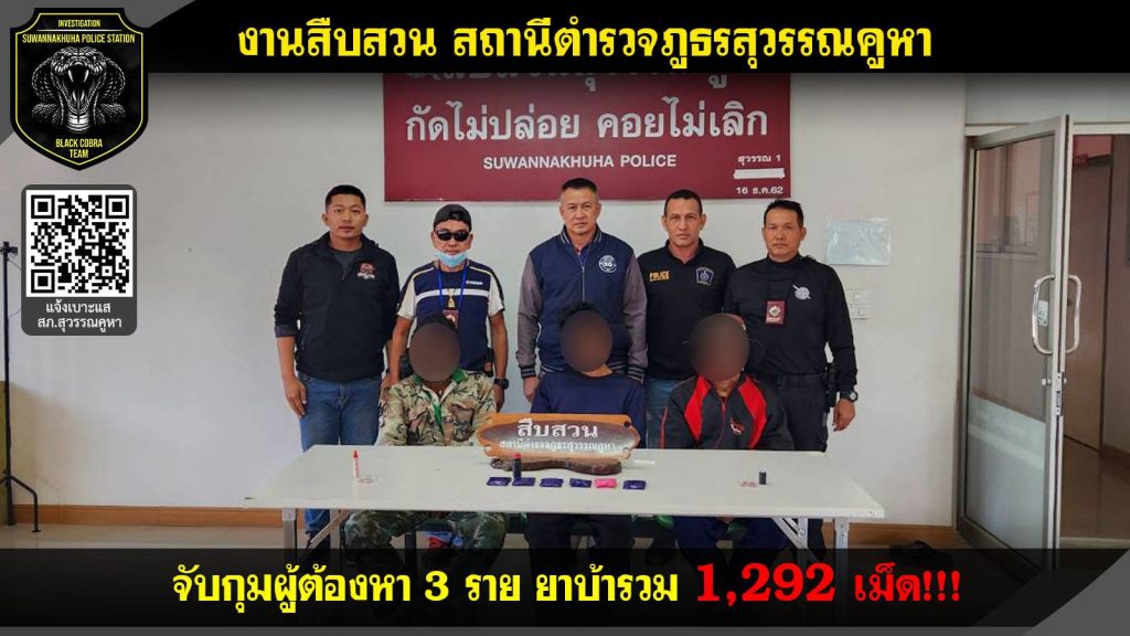 เจ้าหน้าที่ชุดสืบสวน สภ.สุวรรณคูหา จับกุม ผู้ต้องหา 3ราย พร้อมของกลาง ! ยาเสพติดกว่า 1200 เม็ด !!