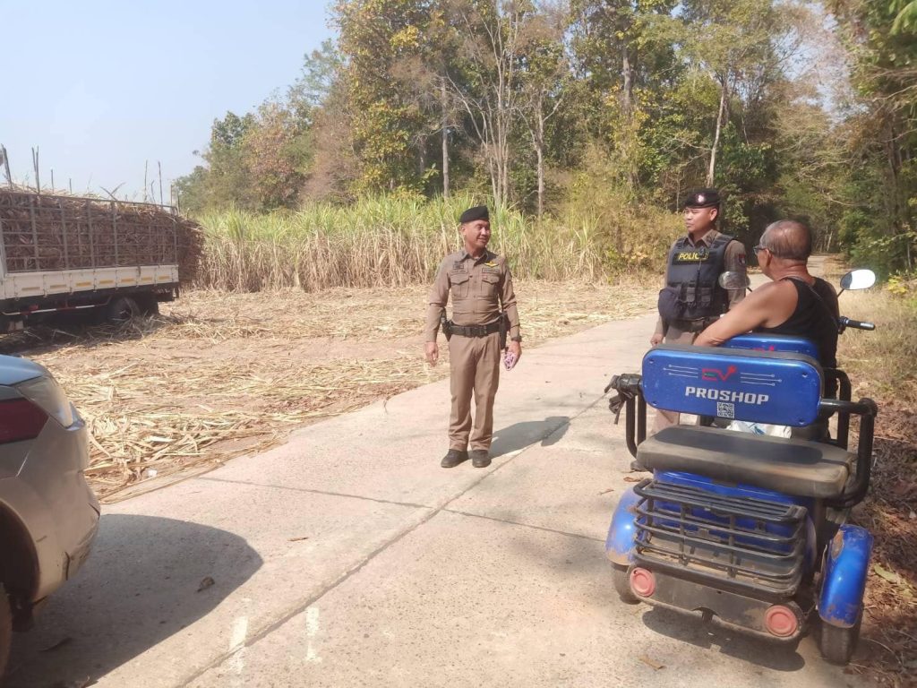 ชุดสายตรวจรถยนต์ ได้ออกประชาสัมพันธ์เกี่ยวกับ“มาตรการของสำนักงานตำรวจแห่งชาติเกี่ยวกับ หยุดฝุ่น PM 2.5 ” ให้กับเกษตรกร(ไร่อ้อย)เรื่องการห้ามเผาป่า พืชไร่(อ้อย)ในพื้นที่