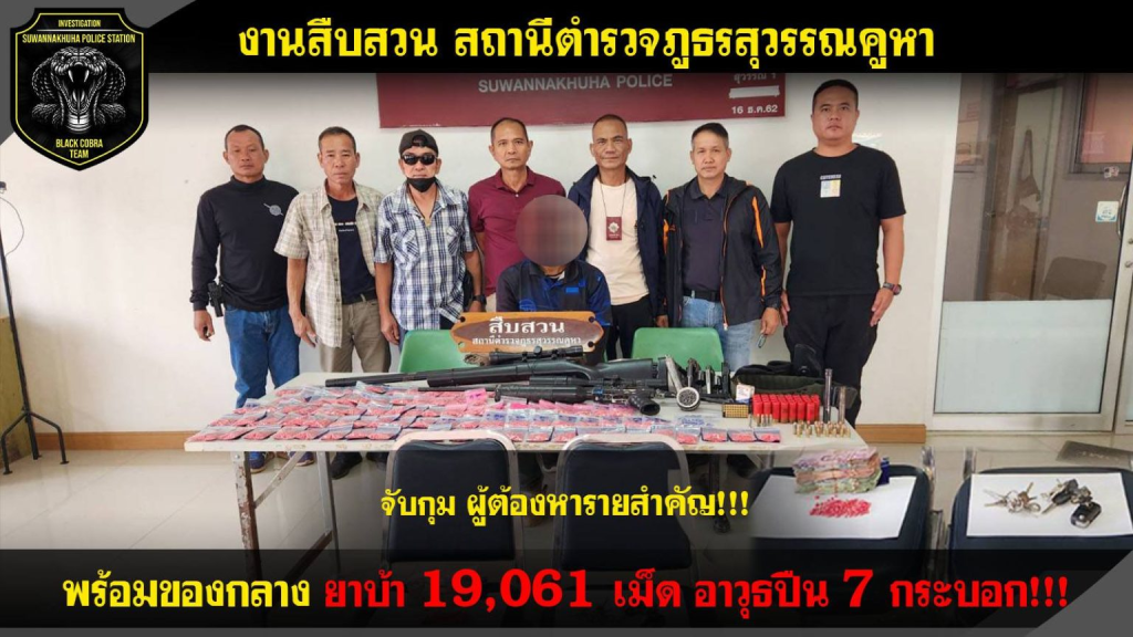 งานสืบสวน สถานีตำรวจภูธรสุวรรณคูหา จับกุมผู้ต้องหาสำคัญ ! ยาบ้ากว่า 25,000 เม็ด พร้อมเครื่องกระสุน !!